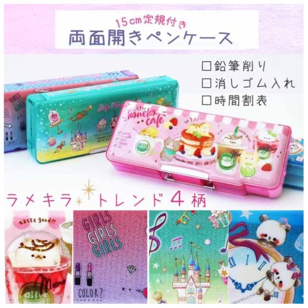 筆箱 小学生 女の子 両面 両面開き ペンケース かわいい おしゃれ ファンシー 小学1年生 入学 新学期 入学準備 筆記用具 文房具 子供 キッズ 鉛筆削り付 文具百貨